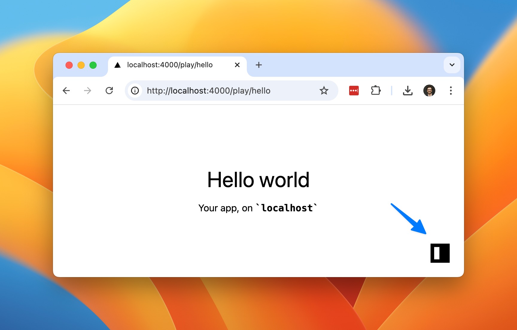 This is your handy devtool shortcut. Once you click it, you'll see a widget that lets you make changes to your app.